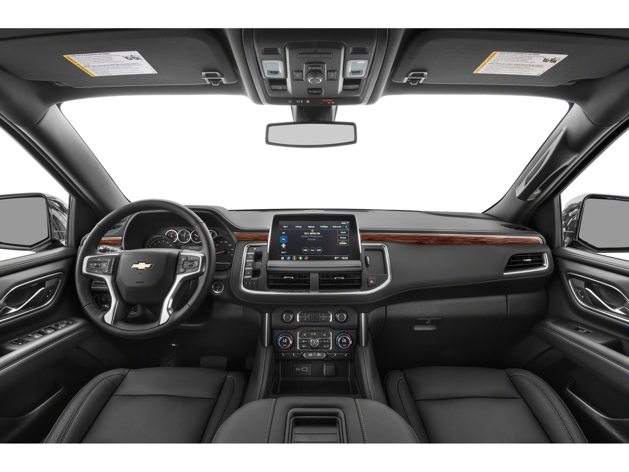 Equipped with Driver Alert Package (Front & Rear Park Assist, Lane Change Alert w/Side Blind Zone Alert, Lane Keep Assist w/Lane Departure Warning, and Rear Cross Traffic Alert), License Plate Front Mounting Package, Luxury Package (2nd Row Pwr Release 60/40 Split-Folding Bench Seat, 3rd Row 60/40 Power-Folding Split-Bench, Automatic Heated Steering Wheel, HD Surround Vision, Heated 2nd Row Outboard Seats, Memory Settings, Outside Heated Power-Adjustable Mirrors, Power Tilt & Telescopic Steering Column, and Rear Pedestrian Alert), Preferred Equipment Group 1LT (10-Way Power Driver & Passenger Seat Adjusters, 1st & 2nd Row Color-Keyed Carpeted Floor Mats, 2 USB Data Ports, Auto-Dimming Inside Rear-View Mirror, Bose 9-Speaker Stereo Audio System Feature, Bright Front & Rear Door Sill Plates, Color-Keyed Carpeting Floor Covering, Driver & Front Outboard Passenger Airbags, Floor Console w/Storage Area, Hands-Free Rear Power Programmable Liftgate, HD Radio, Heated Driver & Front Passenger Seats, Infotainment Display, Leather-Wrapped Steering Wheel, LED Daytime Running Lamps, Memory Settings For Driver, Remote Start, SiriusXM Radio w/360L, and Universal Home Remote), 3.23 Rear Axle Ratio, 3rd row seats: split-bench, 4-Wheel Disc Brakes, 9 Speakers, ABS brakes, Air Conditioning, Alloy wheels, AM/FM radio: SiriusXM with 360L, Apple CarPlay/Android Auto, Auto High-beam Headlights, Auto-dimming Rear-View mirror, Automatic temperature control, Brake assist, Bumpers: body-color, Compass, Delay-off headlights, Driver door bin, Driver vanity mirror, Dual front impact airbags, Dual front side impact airbags, Electronic Stability Control, Emergency communication system: OnStar and Chevrolet connected services capable, Four wheel independent suspension, Front anti-roll bar, Front Bucket Seats, Front Center Armrest, Front dual zone A/C, Front reading lights, Fully automatic headlights, Garage door transmitter, Heated door mirrors, Heated front seats, Illuminated entry, Leather Seating Surfaces, Leather steering wheel, Low tire pressure warning, Memory seat, Molded Splash Guards, Occupant sensing airbag, Outside temperature display, Overhead airbag, Overhead console, Panic alarm, Passenger door bin, Passenger vanity mirror, Power door mirrors, Power driver seat, Power Liftgate, Power passenger seat, Power steering, Power windows, Premium audio system: Chevrolet Infotainment 3 Plus, Premium Smooth Ride Suspension, Radio: Chevrolet Infotainment 3 Plus System, Rain sensing wipers, Rear air conditioning, Rear anti-roll bar, Rear reading lights, Rear seat center armrest, Rear window defroster, Rear window wiper, Remote keyless entry, Roof rack: rails only, Security system, Speed control, Speed-sensing steering, Split folding rear seat, Spoiler, Steering wheel mounted audio controls, Tachometer, Telescoping steering wheel, Tilt steering wheel, Traction control, Trip computer, Variably intermittent wipers, Voltmeter, Wheels: 18" x 8.5" Bright Silver Painted Aluminum, and Wheels: 20" x 9" Painted Aluminum.