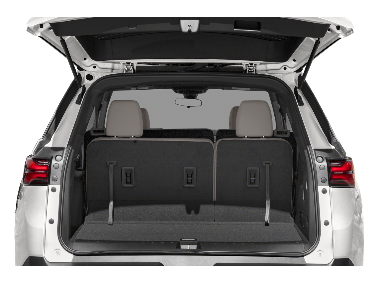 Equipped with Floor Liner Package (LPO) (1st & 2nd Row All-Weather Floor Liner (LPO), 3rd Row All-Weather Floor Liner (LPO), and Integrated Cargo Liner (LPO)), Midnight/Sport Edition (Black Bowtie, Black Roof Rails, and Wheels: 18" Gloss Black Painted Aluminum), Preferred Equipment Group 1LT (Heated Driver & Front Passenger Seats), Rear Camera Mirror Package (HD Surround Vision, Rear Camera Mirror Washer, and Rear Pedestrian Alert), Trailering Equipment (Heavy-Duty Cooling System, Hitch Guidance w/Hitch View, and Trailering Assist Guidelines), AWD, 2-Way Manual Front Passenger Seat Adjuster, 3.49 Axle Ratio, 3rd row seats: split-bench, 4-Wheel Disc Brakes, 6 Speakers, 6-Speaker Audio System Feature, 8-Way Power Driver Seat Adjuster, ABS brakes, Air Conditioning, Alloy wheels, AM/FM radio: SiriusXM, Apple CarPlay/Android Auto, Auto High-beam Headlights, Automatic temperature control, Brake assist, Bumpers: body-color, Compass, Delay-off headlights, Driver door bin, Driver vanity mirror, Dual front impact airbags, Dual front side impact airbags, Electronic Stability Control, Emergency communication system, Exterior Parking Camera Rear, Four wheel independent suspension, Front anti-roll bar, Front Bucket Seats, Front Center Armrest, Front dual zone A/C, Front reading lights, Fully automatic headlights, Garage door transmitter, Heated door mirrors, Heated front seats, Illuminated entry, Leather steering wheel, Low tire pressure warning, Not Equipped w/Rear Park Assist (060), Occupant sensing airbag, Outside temperature display, Overhead airbag, Overhead console, Panic alarm, Passenger door bin, Passenger vanity mirror, Power door mirrors, Power Driver Lumbar Control, Power driver seat, Power Liftgate, Power steering, Power windows, Premium Cloth Seat Trim, Radio data system, Radio: Chevrolet Infotainment 3 Plus System, Rear air conditioning, Rear anti-roll bar, Rear reading lights, Rear window defroster, Rear window wiper, Remote keyless entry, Security system, SiriusXM w/360L, Speed control, Speed-sensing steering, Spoiler, Steering wheel mounted audio controls, Tachometer, Telescoping steering wheel, Thatcham Black Lug Nut & Wheel Lock Kit (LPO), Tilt steering wheel, Traction control, Trip computer, Turn signal indicator mirrors, Variably intermittent wipers, Voltmeter, and Wheels: 18" Bright Silver-Painted Aluminum.